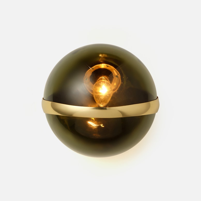 - SMOKED HAND-BLOWN GLASS/POLISHED GOLD BRASS