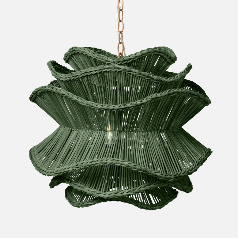 🌸 Description: Transform your space into a haven of natural elegance with the Alondra Chandelier by Made Goods. This captivating chandelier draws inspiration from the delicate beauty of flowers, featuring six layers of intricately braided rattan. The densely braided edges create gentle waves, providing a soft and diffused light that radiates a warm and inviting glow.