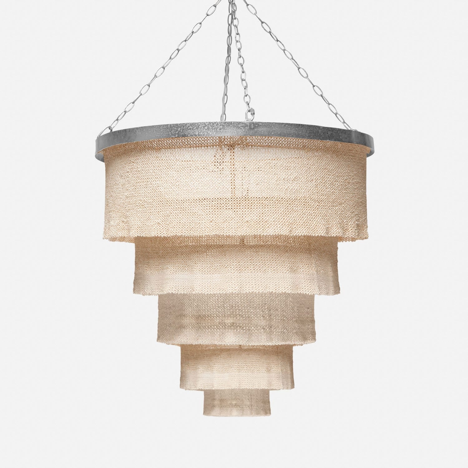 • Intricate Coco Bead Design: The chandelier features tightly woven coco beads meticulously arranged in three concentric rings, creating a visually stunning and intricate design.
