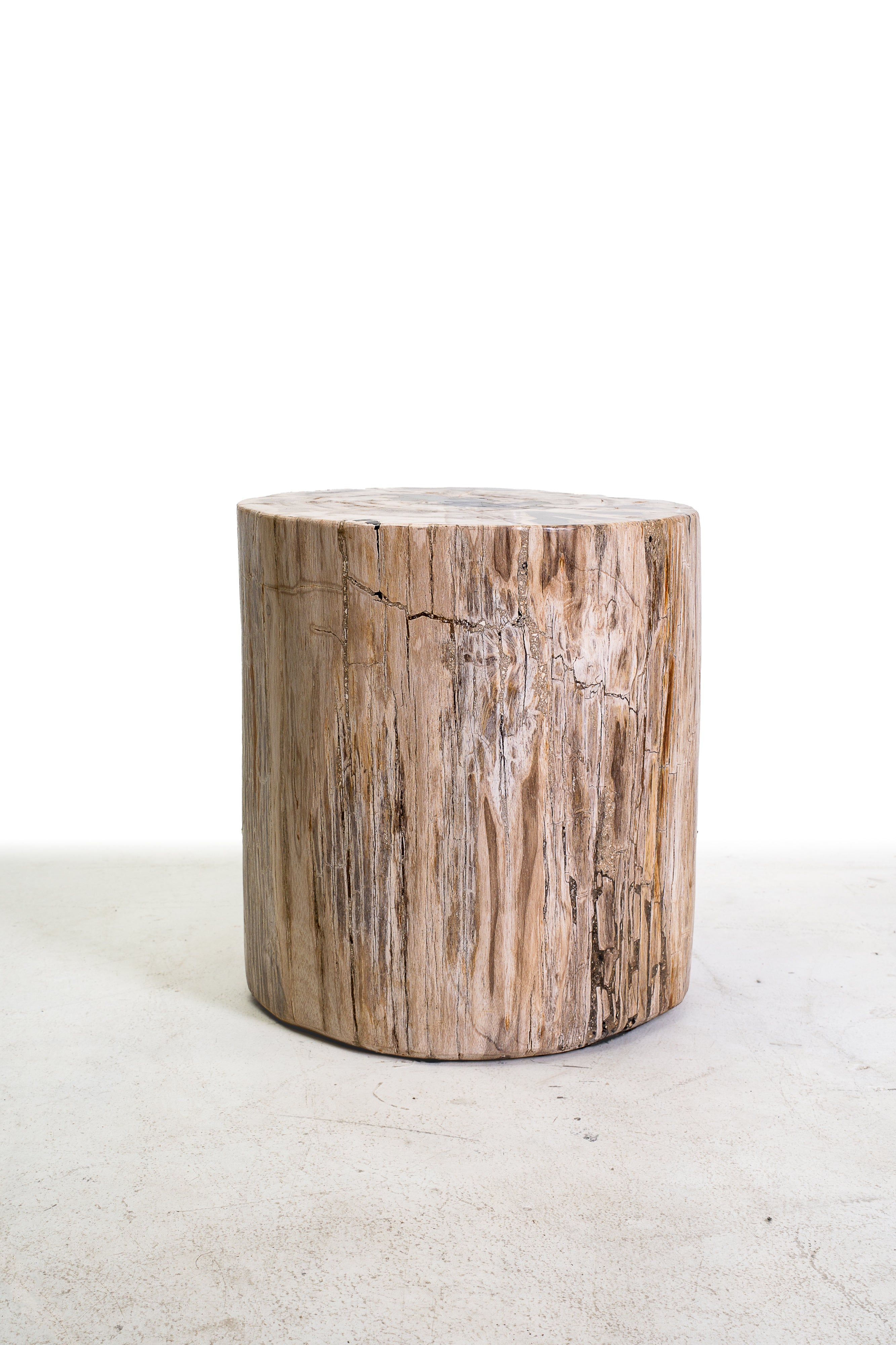 Crafted from authentic petrified wood, this fully polished round stool is a remarkable fusion of ancient geology and modern design. Over millions of years, organic wood has gradually transformed into stone through natural mineralization, preserving the intricate grain patterns and textures of the original tree.