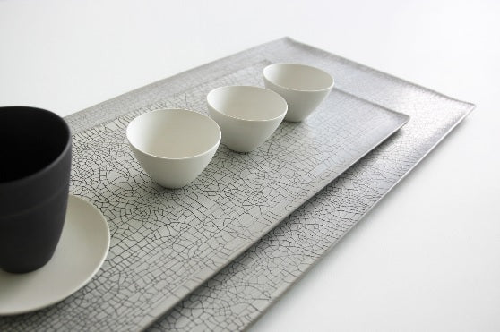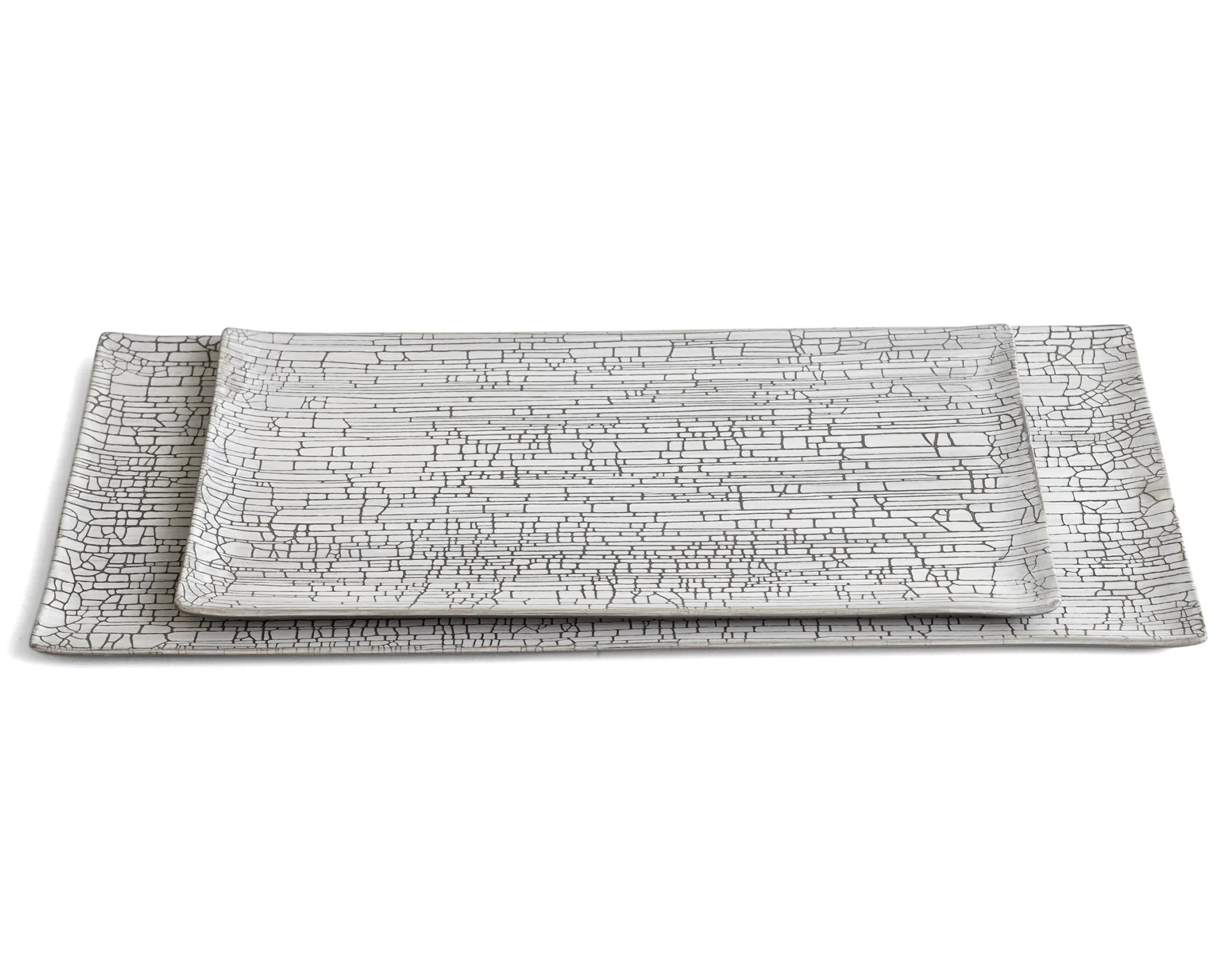 The VARE Craquelé White Porcelain Tray by Rina Menardi transforms everyday serving into a moment of understated luxury. Finished in a luminous white glaze with delicate crackled detailing, this tray offers quiet texture and refined depth while maintaining a clean, modern presence.